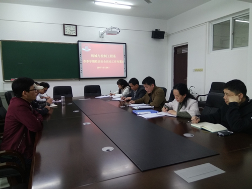 3月28日下午,我系于藏修楼3205会议室召开“机械与控制工程系春季学期校园安全活动工作布置会”,参加此次会议的有我系黄荣学主任、袁斌书记、莫天荣副书记、各教研室主任以及全体学工人员,本次会议由袁斌书记主持。