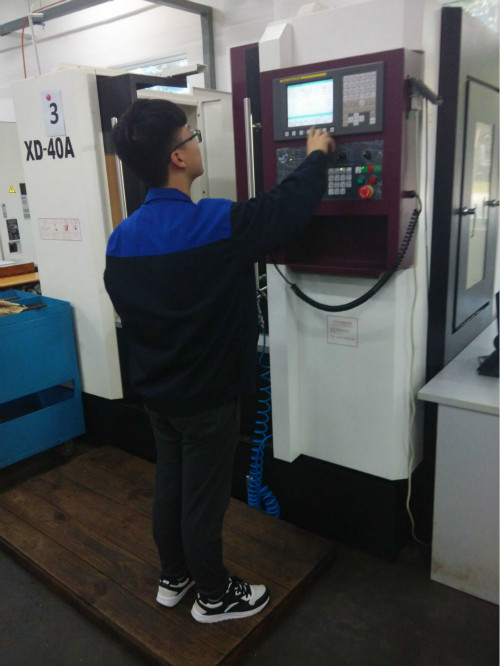 为了进一步推动科技活动的深入发展,培养学生技能操作,挖掘我校学生技能型人才,促进教学质量的提高,达到以赛促教、以赛促学的目的,2016年10月24日我系科技活动月加工中心竞赛在藏修楼数控车间举办。 本次大赛由石毅科老师担任评委。同学们也十分认真的对待这次比赛,认真、专注地操控数控机器,小心而有条不紊的操作着,争分夺秒的完成自己的工件。争取加工出自己最理想的成绩。 愿同学们取得好的成绩!学到更多的东西!