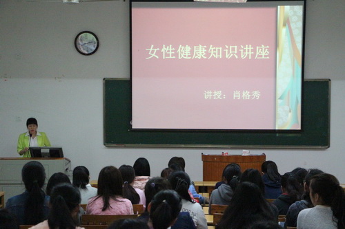 肖医生讲解女性常见的妇科疾病比如痛经、妇科炎症、宫颈疾病产生的原因、造成的危害、预防和治疗的方法。她从女性健康角度出发,用生活中相关实例,结合图片、文字深入浅出的讲解了人流、性病和艾滋病的危害。讲座中,肖医生不仅讲解女性健康自我防护的专业知识,也建议女生在生活中关爱自身健康,增强自我保护意识,以积极向上的精神面貌投入到大学学习和生活中。