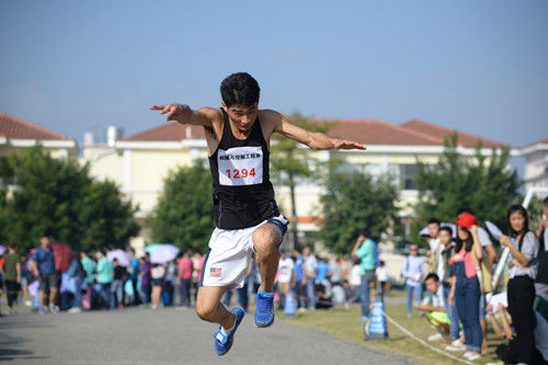 开赛前,我系运动员在场下做了充分的热身准备,压腿、伸展跳等准备活动完毕后,比赛开始了激烈争夺。比赛中,他们助冲了一段之后,一步两步三步跳,像一只雄鹰一般的向前飞跃,每一次跳跃都牵动着我系观众的心。伴随着观众的呐喊声。我系的选手沉着冷静,将三级跳远的助跑、跳跃、落地,整套技术动作发挥到极致。完美的动作赢得场下观众阵阵欢呼,经过激烈的角逐,来自15级的孙明一同学以11.38米的成绩获得了第五名。
