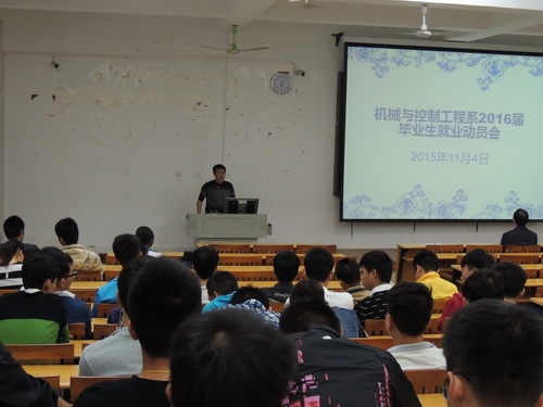 11月4日下午,我系在空港校区启智楼108教室召开2016届毕业生就业动员大会,出席本次大会的有:我系党总支书记袁斌、副主任刘高鹏、学工组负责人莫天荣以及2013级全体辅导员、班主任及全体毕业生。