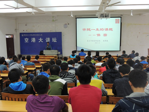 11月12日下午,我系于启智楼108教室成功举行主题为“伴随你一生的课题——保密”的空港大讲坛,有幸邀请来崇左市国家保密局副局长施常春同志为本次论坛主讲,系部党总支书记袁斌、学工组负责人莫天荣和辅导员王芳老师以及15级全体学生参加本次论坛。