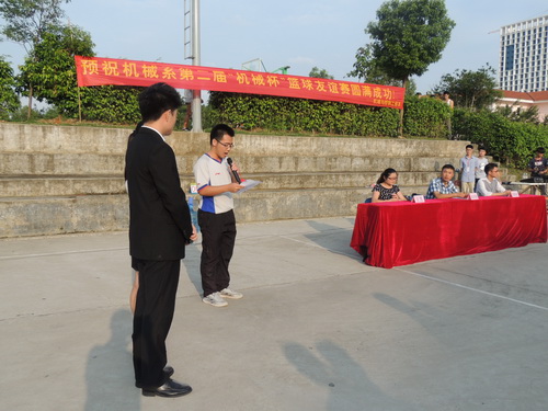 空港新沃土,球场现英姿,经过一段时间的精心筹备,5月21日下午,我系第二届“机械杯”篮球友谊赛在空港校区篮球场正式开幕。出席本次开幕式的有我系党总支副书记刘术刚、系部辅导员以及参加比赛的全体运动员和裁判员。