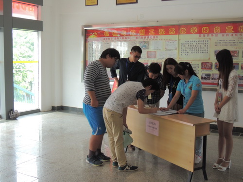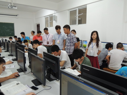 3、6月26日毕业生党员和系党总支副书记刘术刚老师一起下学生计算机课堂进行课堂检查