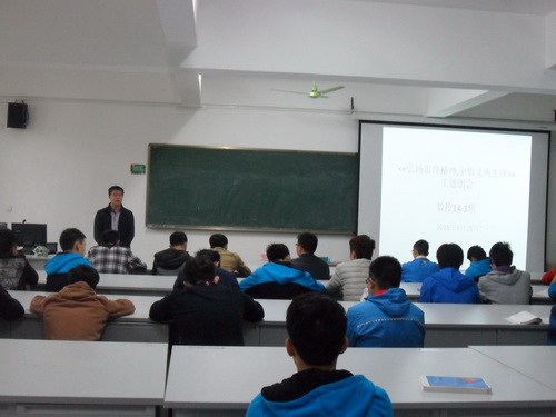 我系党总支书记袁斌老师参加数控14-1班班级学雷锋主题班会场景