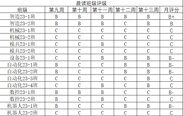 本月英语晨读班级评分