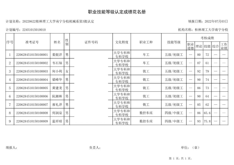 我系于2022年6月28日至30日开展了2022年第三批次职业技能等级认定考试。本批次认定考试数控车工32人,数控铣工48人,共80人,其中数控车工合格30人,数控铣工合格47人。现将考试成绩公布如图,公示时间从7月3日至7月7日。