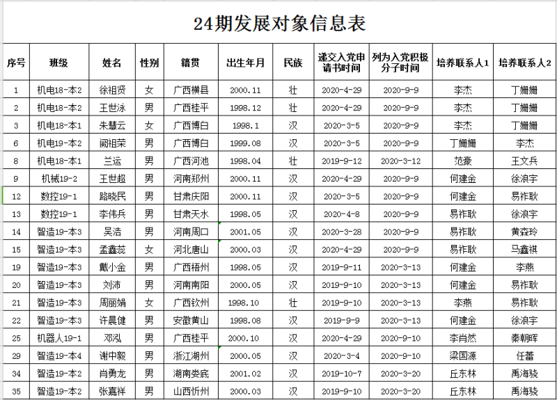 经各支部委员会研究同意,将徐祖贤等18名同志列为发展对象人选。根据发展党员工作有关要求,现将其有关情况公示如下:
