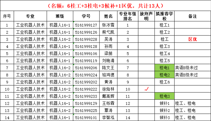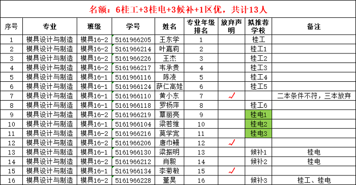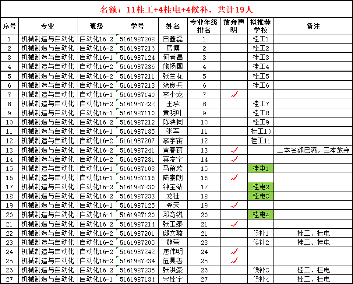 根据《自治区教育厅关于做好2019年全区高校优秀高职高专生选拔升本工作的通知》(桂教高教〔2019〕21号)、《桂林理工大学2019年选拔优秀高职高专学生进入本科学习实施细则》精神和分校2019年选拔优秀高职高专生进入本科学习实施细则的要求,经个人申请、系部资格审核,现将我系拟向分校教务管理部推荐专升本名单公示如下: