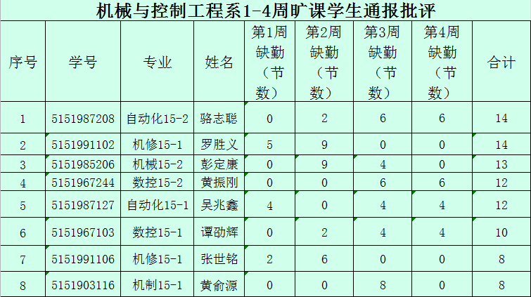 了严肃校纪校规,教育本人、警示同学,根据《桂林理工大学学生违纪处分条例》(桂理工学【2012】50号)第三章第七节第四十条以及《桂林理工大学学生学习管理规定》(桂理工教【2009】27号)考勤和请假管理条例,决定拟给予以上8名同学系内通报批评。