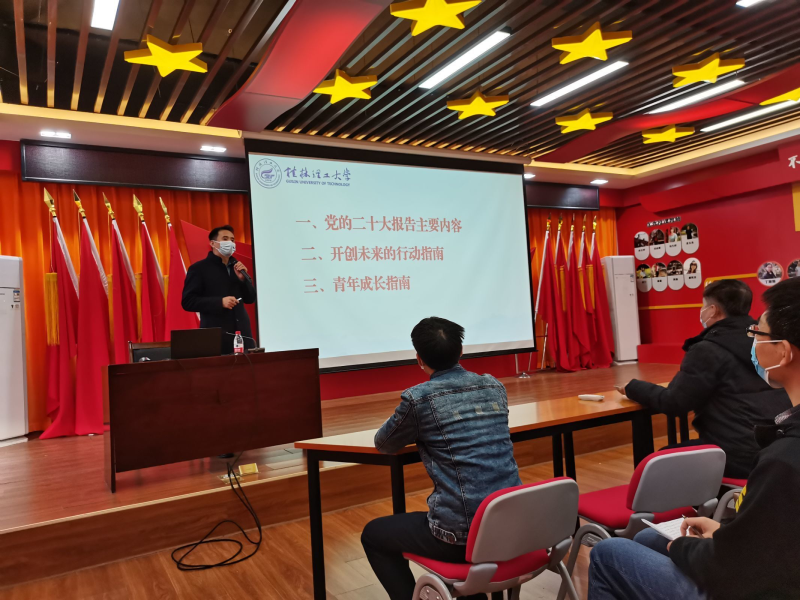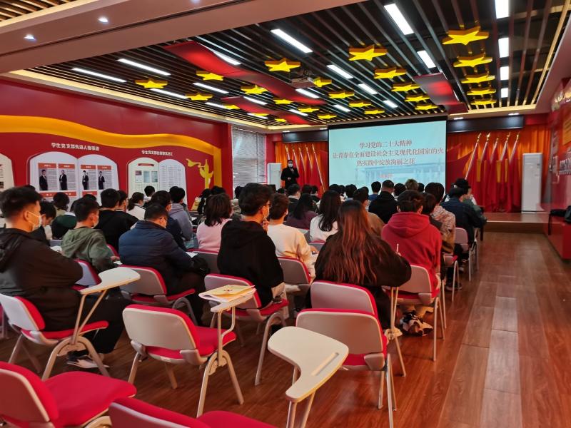 12月6日,英国上市公司365党委副书记唐承泽在党员活动中心为机械系第一、第三、第四党支部讲授“学习党的二十大精神,让青春在全面建设社会主义现代化强国的火热实践中绽放绚丽之花”主题党课。