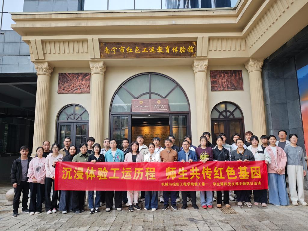 为进一步增强党组织的凝聚力和战斗力,激励全体党员发扬红色传统、传承红色基因,从中汲取前进的智慧和力量。11月07日,我院教工第一党支部联合学生第四党支部赴南宁市红色工运教育体验馆开展“沉浸体验工运历程,师生共传红色基因”主题党日活动。