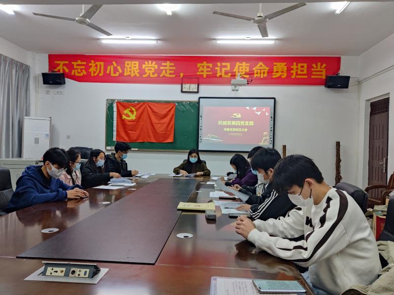 2022年12月07日下午17点40分,我系第四党支部在藏修楼3205会议室召开支部大会讨论关于接收罗博文、张锐、莫雯婷、梁佩婷、隆艳萍5位同志为预备党员的相关事宜。会议由第四党支部书记丘东林主持,有表决权的正式党员12名,应到会12名,实到会10名,符合规定人数。