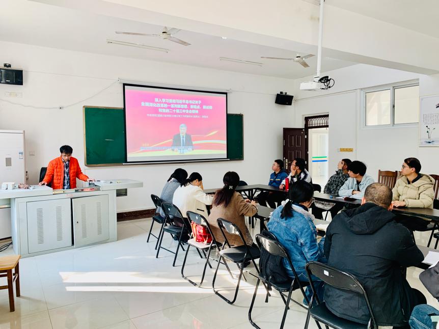 会议伊始,奚富由同志领学议题,全体教师党员学习相关视频,深入学习了习近平总书记重要讲话,深刻领会了习近平总书记关于全面深化改革的一系列新思想、新观点、新论断和党的二十届三中全会精神。