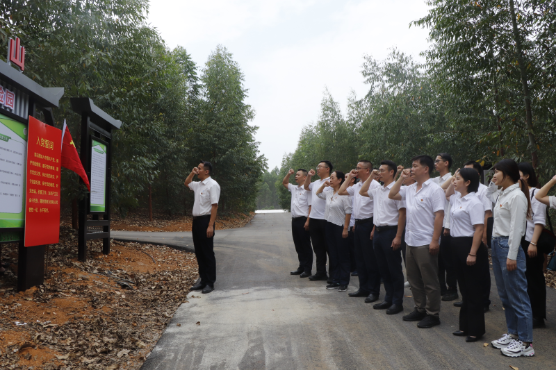 为充分发挥校地合作优势,建立互鉴互学长效机制,形成以党建为引领,以党建促发展的良好局面。10月25日,唐承泽副书记带领机械与控制工程系教工第一党支部党员到广西东门林场,与林场机关第四党支部联合开展以“加强校场合作 促进协同育人 共庆党的二十大胜利召开”为主题的党日活动。唐承泽副书记一行10人在林场场长邱炳发等领导陪同下先后参观了林场营林区、德科新型材料有限公司、林场场部等地。