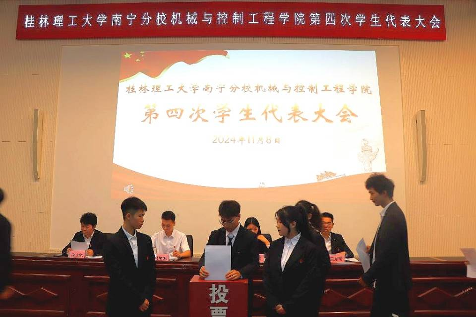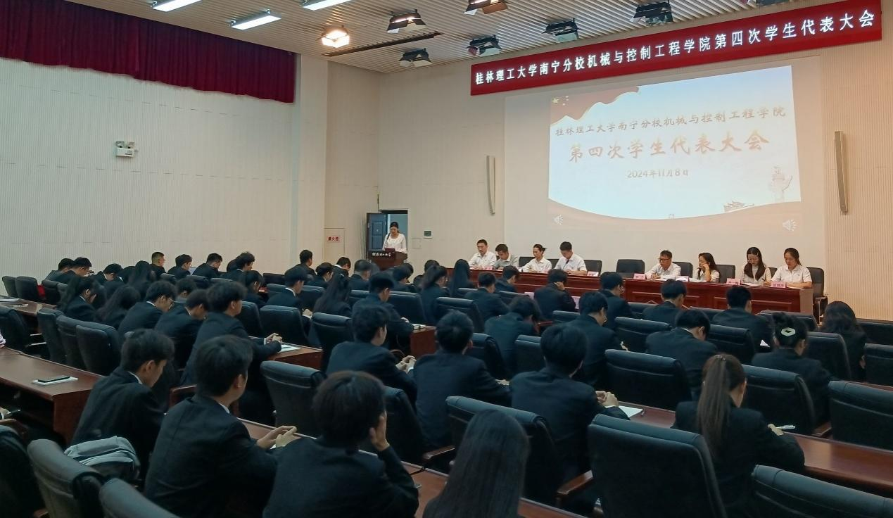11月8日下午,机械与控制工程学院第四次学生代表大会在图书馆报告厅召开。学院党委书记蒙童慧,党委副书记、学工组长李杰,团委书记吕顺岷,分校团委韦艳娜,我院全体辅导员及校级团体、兄弟学院学生会代表出席大会,全体学生代表参加大会。
