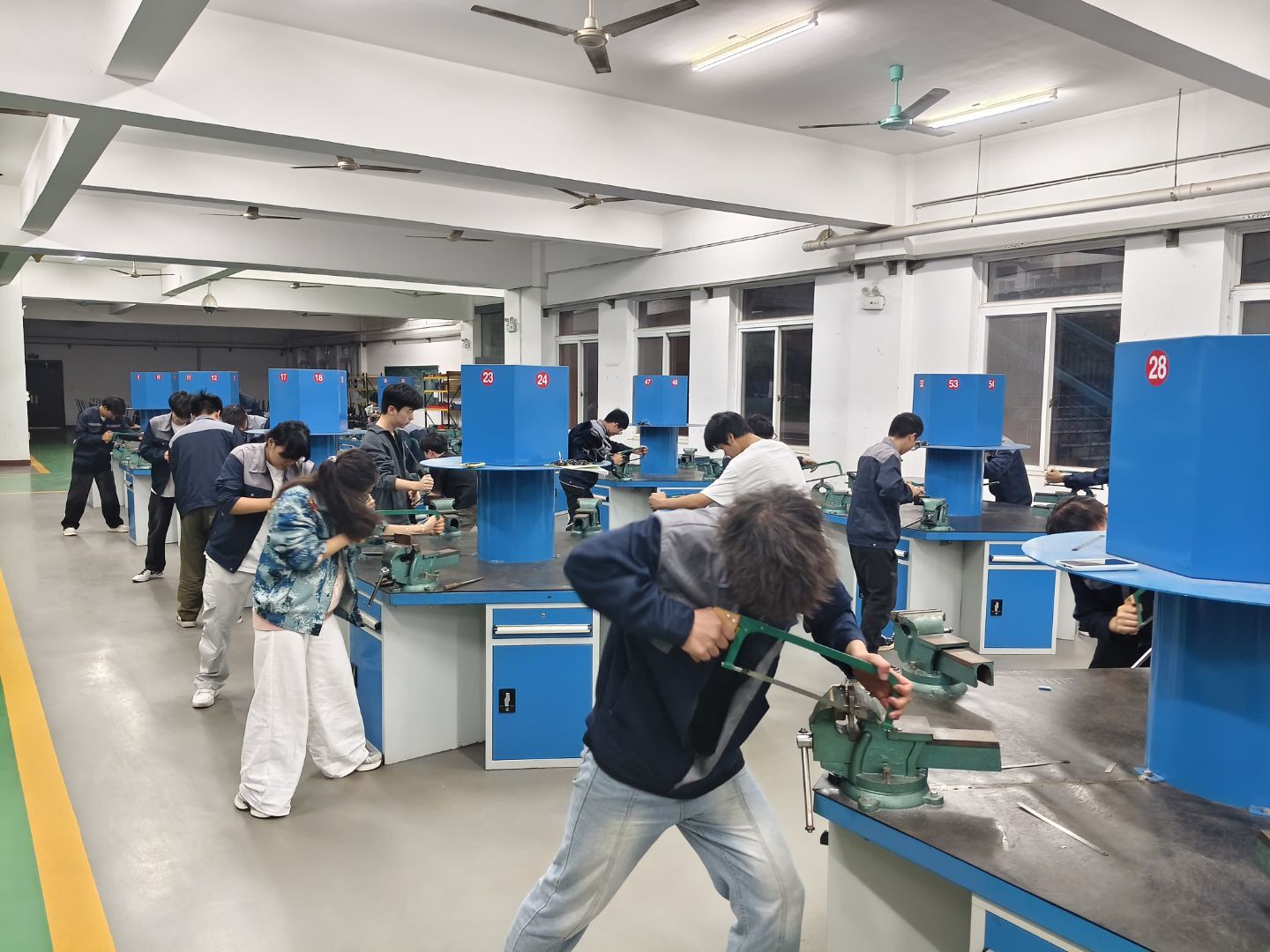 本次比赛要求参赛学生在规定时间内完成相应的钳工作品,重点考察学生的读图识图、工艺规划、精密加工及测量等综合能力。比赛过程中,学生全神贯注,每一道工序均严格遵循工艺规范,精益求精,充分展现了其扎实的专业基本功与追求卓越的工匠精神。