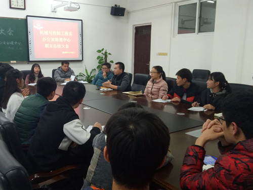 1月10日下午17时,我系办公室助理中心于藏修楼3205会议室召开本学期期末总结大会,出席本次会议的有我系党总支副书记兼学工组长甘锦琛老师、我系辅导员张业娟老师、辅导员李肖然老师、辅导员陈平东老师、辅导员何建金老师、辅导员韦选建老师以及我系办公室助理中心16、17级全体助理。