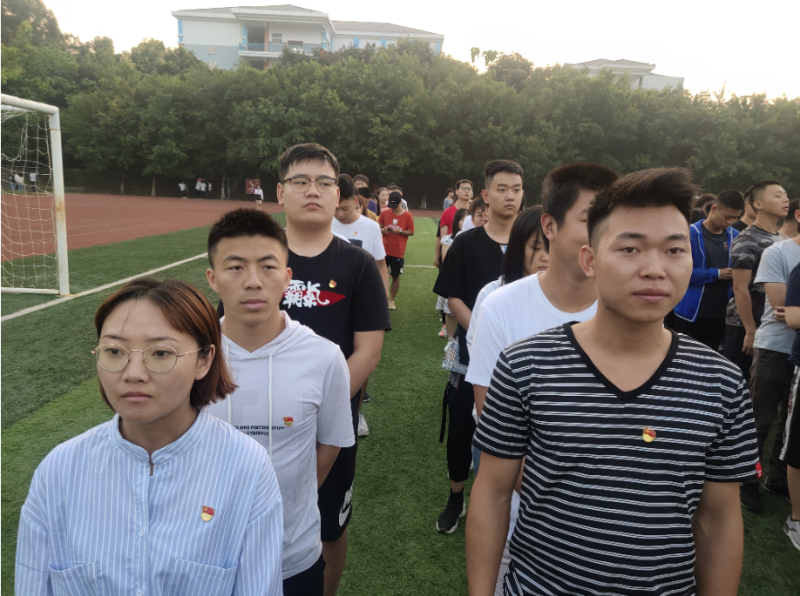 我系党支部于10月1日上午7:00在空港校区运动场组织全体党员参加“迎国庆,升国旗”活动,全体党员的注目礼下,英姿飒爽的国旗护卫队队员们护送鲜艳的五星红旗进场,行礼完毕,伴随着庄严的中华人民共和国国歌,五星红旗冉冉升起,迎风飘扬。在场的每一个人向国旗行注目礼,深怀对祖国无限的热爱和崇高的敬意。
