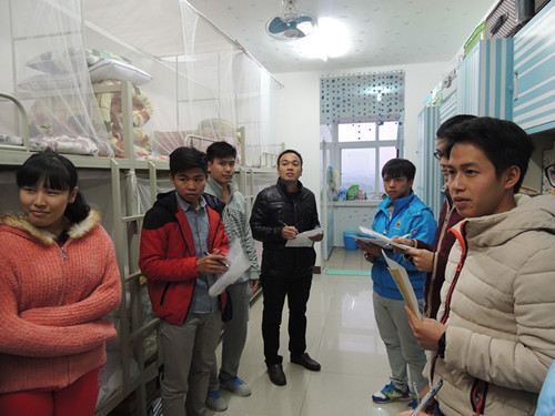 莫天荣老师和同学们进行宿舍评比