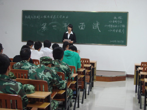 我系团总支学生会是机械与控制工程系的管理和协调组织,主要任务是协助学工老师做好系部的日常管理和活动协调,内设机构有:秘书处、组织部、宣传部、学习部、生活部、文艺部、体育部、纪检部、外联部。负责纳新的工作人员认真负责的对待此次纳新活动,仔细听取了新生的自我介绍,并提出适宜的问题来考察新生处理相关问题的能力。面对台下众多的“主考官”,大一新生从容而自信,对所提出的问题认真作答,言谈举止中流露出对学生会工作的真挚渴望及敢于表现自我的信心。由于各部门工作的不同需求,像宣传部采取写新闻稿、现场书法和和绘画的方式来考察新生的实际操作能力,以求寻觅出最适合的人才,更好的完成系学生会的各项工作。