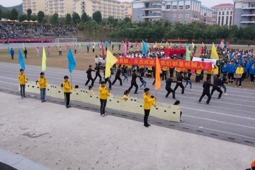 伴随运动员入场进行曲,学院的国旗班、鲜花队、教工队及各系的代表方队逐一的从主席台前走过。并且各系的队伍展示了代表自己系的精彩表演,他们用表演表达对这次运动会美好的祝福。