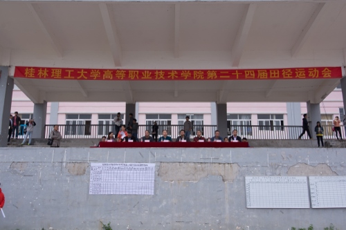 于校田径场举办了第24届田径会,桂林理工大学副校长肖岳峰,我院院长王文,院党委书记罗雪平,常务副书记梁冬松,书记黄润均,副院长劳景竂、唐承泽、陈冬莲以及学院有关职能部门主要领导出席开幕式并在主席台就座。