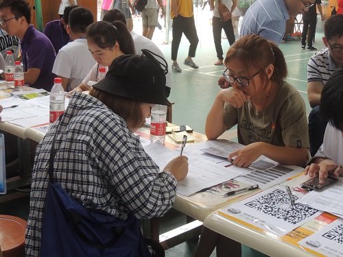 2018年9月8日一大早,17级的新生班助们就已经赶到体育馆,将自己所带班上的同学名单以及入学材料整理好,心中默念着自己的工作流程,静待18级新生的到来。