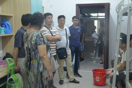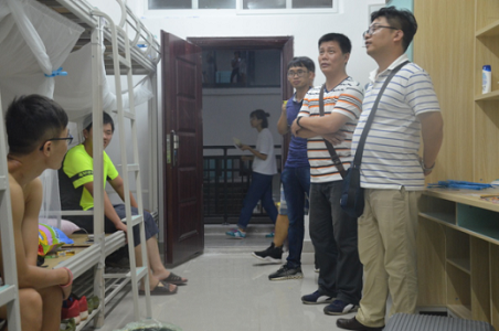 在学生宿舍,各位老师仔细查看了宿舍的环境设施,查看了宿舍安全状况,又与新生们进行了亲切的交谈。询问新生们对宿舍条件、居住环境是否满意,对学校环境是否适应,还特别提醒同学们注意安全,防火防盗防骗,如有困难及时向上级反映,学校会尽力为同学们创造良好的学习住宿环境。袁斌书记还叮嘱,大家到了学校就是一家人,同学室友之间一定加强交流,互相帮助,尽快适应大学生活环境,并尽早对未来的大学生活做好规划。