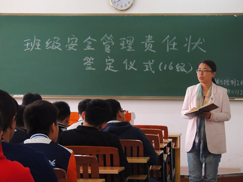 11月25日中午12点,我系于3栋藏修楼3203、3204教室举行“机械与控制工程系班级安全管理责任状签字”仪式,我系学工组组长莫天荣老师、我系辅导员李肖然老师、我系辅导员张业娟老师及15、16级各班班长、副班长、纪律委员、学习委员、生活委员、体育委员出席了本次仪式。