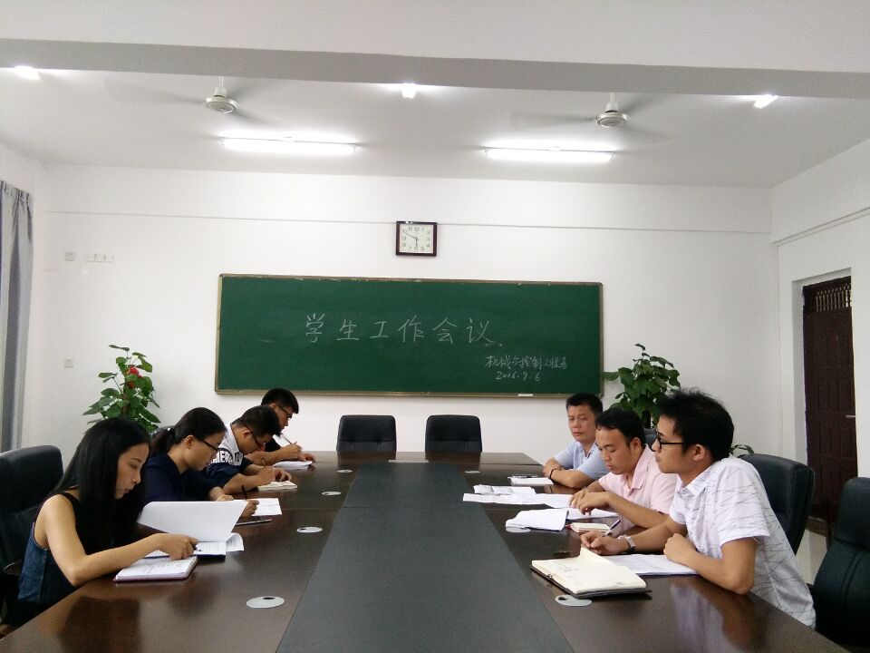 9月6日下午,我系在空港校区藏修楼205会议室召开2016年秋季新学期学生工作会议。我系党总支书记袁斌、学工组长莫天荣及全体学工成员参加此次会议。