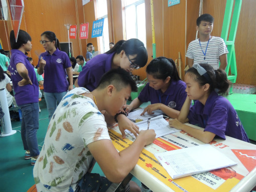 随着新同学陆陆续续的到来。志愿者们迅速帮助他们把行李寄存好,有条不紊的引领新生完成报到的所有程序,报到过程虽然简单,但其中不乏有语言差异等问题,在系领导和老师的细心讲解下,真正做到了:沟通零距离,沟通无差异。 宿舍的接待也是井然有序的,志愿者负责将每一名到来的新生及家长送到宿舍,安置好之后离开,并会留下志愿者的电话号码,让新生有需要的时候及时联系志愿者。 新生中有一名同学是从福建来的,中途出了点小差错,行李箱给拿错了,在老师和同学的多方联系寻找帮助下,完好无损的把东西交到他们手上时,他的家长不禁赞叹:“没想到学校的服务工作这样周到,让我们家长把孩子放心的留到这里,同学,谢谢你!”大家都坚持奋战在自己的岗位上,都忙得不亦乐乎。在老师的组织下,全体工作人员配合无间,达到了很好的效果。整个迎新工作都井井有条的进行,没有出现任何的误差。