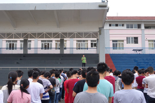 2016年4月27日7:10,我系在运动场召开14、15级全体学生安全教育会议。14、15级参加早操的全体同学和辅导员张业娟老师参加会议,学工组长莫天荣老师主持会议。
