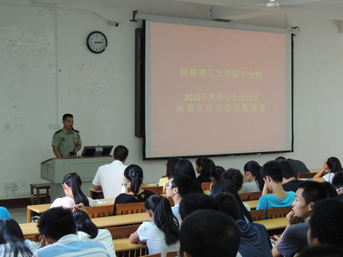 活动先在启智楼208教室举行防范地震灾害讲座,由扶绥县消防官兵同志详细讲解本次演练的实施,同学们纷纷用心倾听。而后由辅导员带领着大家到图书馆指定的场所进行演练。随着图书馆烟雾报警器的响起,辅导员冷静指引着大家有序地进行疏散,顺利到达安全地带。最后由保卫部副主任邹志友老师总结发言,宣布此次演练圆满结束。