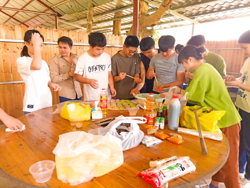 本次活动分为“包饺子—烧烤—自我展现—观赏风景”四个环节。此次活动给同学们提供了更多自我展现的机会,在包饺子环节,人人大胆尝试,饺子形状各具特色,大家一边包饺子一边愉快地聊天,氛围温馨活跃;自我展现环节,同学们大显歌喉,高音、低音、经典和流行歌曲,各展风采。整个活动过程同学们分工有序,相互协作,让每一环节井然有序的进行。