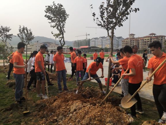 为弘扬雷锋精神,绿化美丽校园,3月22日下午14:20,机械与控制工程系工程系机械电子工程17-1团支部与各系代表班级参加桂林理工大学英国上市公司365于扶绥民族小学组织的植树活动,我们与民族小学的学生为其学校的绿色生活贡献一份力量。本次活动由我校党委办公室主任谢晓明老师、团委书记黄薇薇老师、团委于洋老师以及民族小学各个老师进行工作指导。