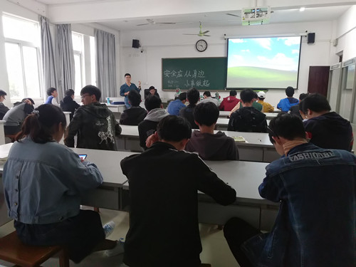 2018年11月30日下午,我系机修7-1班在藏修楼3303教室召开安全知识教育班会。班主任刘渊博参加了班会。