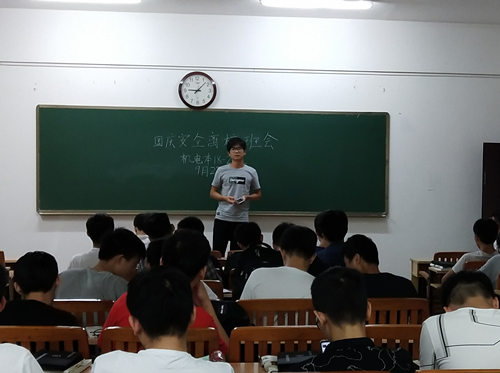 国庆黄金周将至,为增强同学们的安全防范意识,机电18-本2班于9月28日晚上九点在藏修楼召开了国庆离校安全主题班会。会议由班长主持。