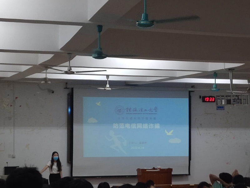 此次班会由辅导员蓝慧萍老师主持。班会开始后,蓝慧萍老师便讲了电信诈骗的手法和途径、电信诈骗造成的损失、常见的电信诈骗案例、常见的电信诈骗类型(网站贷款、虚假购物、刷单返利)等;并用多媒体给我们观看了有关电信诈骗的纪录片。随后,蓝慧萍老师又强调了我们的学习问题、师生间的交流沟通问题、各班班干对班级内的通知问题,以及疫情封校期间学生应学会调节心情、多运动、多与散步等。