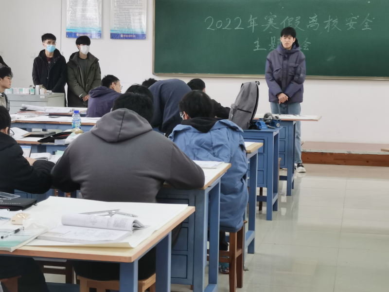寒假临近,天气逐渐寒冷,各种安全隐患慢慢显露出来,寒季事故频频发生,这引起了我们广泛地关注,为了提高同学们地安全防患意识,尽可能地减少意外地发生,保障同学们地安全,我系智造20-本2班于12月31日早上11点半,在藏修楼3404教室开展“寒假安全教育”主题班会,班级全体成员参加。本次班会由班长廖仁祥主持,同时参与会议的有班主任韦宁照。