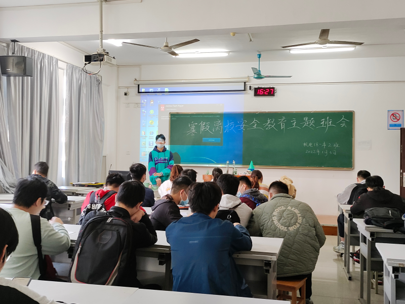 春节寒假将至,为提高同学们的安全意识,1月3日16点30分,机电18本2班于3204教室开展寒假安全教育主题班会,会议由班长粟天星同学主持,参加会议的主要人员有班主任黄基宁老师。