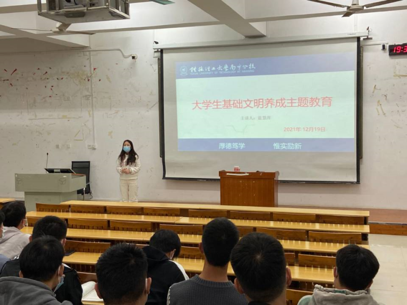 2021年12月19日19:00,我系自动化21-1、2班于8栋智启楼8208教室召开“大学生基础文明养成”主题教育,此次班会由辅导员蓝慧萍老师主持,且自动化21-1、2班全体成员出席本次班会。