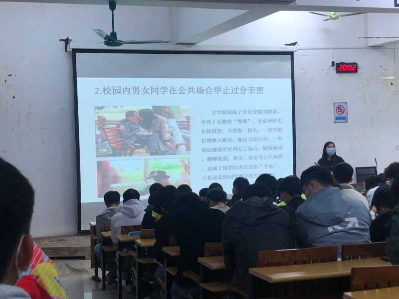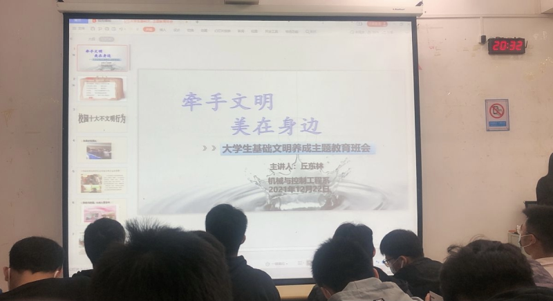 2021年12月22日晚上在八栋教学楼8301召开法制教育主题班会,主持会议的是丘东林丘老师,智造专业全体共同参与。