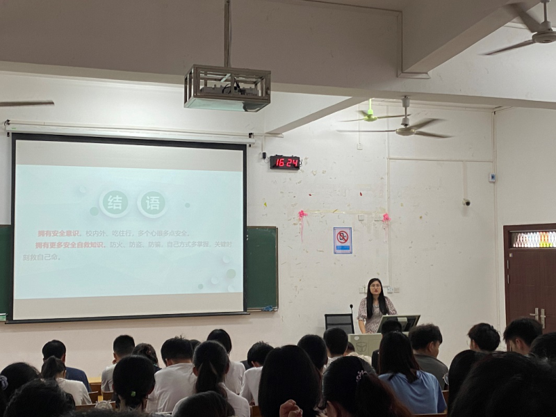 辅导员丘东林老师主持讲话说明了此次主题班会的目的与重要性,并且就此次主题班会发表了讲话,老师根据出行安全、宿舍用电安全、饮食安全、财务安全、网络安全、意识形态安全与疫情防控等多方面提出了决解方案以及防范措施。在这过程中同学们认真听讲,积极配合老师。