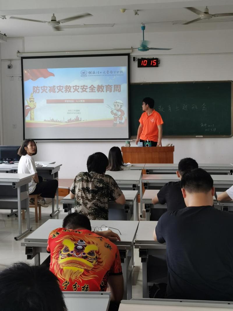 首先是安全委员王庆发同学对于防灾减灾日的介绍。之后又向同学们讲解了历史上一些破坏性较大的地震灾害,并普及了地震带的相关知识。之后又相继介绍雷电火灾篇、洪水台风篇、沙尘暴泥石流篇、校内安全篇。