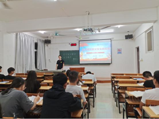石龙同学为同学们讲述了引起火灾的安全隐患、火灾带来的危害以及在各种场所如何进行自救等方面内容,为同学们敲响了警钟。班长利用PPT给同学们进行了消防安全教育专题培训,详细的介绍了各类突发事件的特点及危害,向大家普及防火减灾基本技能的能力和应急常识,增强了同学们防灾减灾的意识。同学们一起观看《暴雨防灾减灾安全知识宣传片》,学习在暴雨来临时如何应对;观看了《防灾减灾救灾知识宣传片》,熟悉和了解防灾减灾救灾的知识,提升同学们避险自救能力。观看《泥石流逃生知识》,使同学们在遇到灾害时,有相应的知识去应对。最后,本次班会圆满结束。