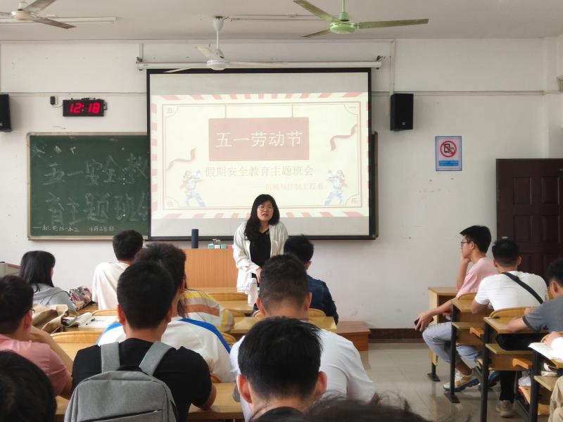 4月28日12点,机电18-本2班在2306教室召开“五一”安全教育主题班会,会议以PPT的形式展开,由叶香艳同学主持,会议的主要人员有:班主任黄基宁老师。