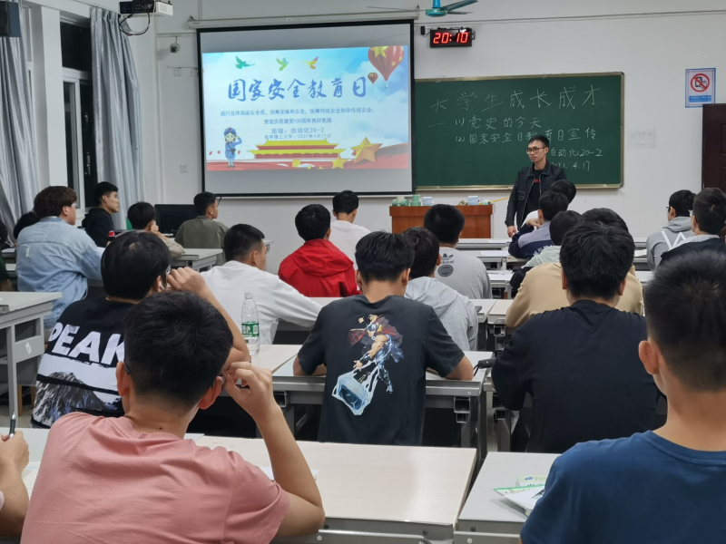 4月17日晚19:30,我系自动化20-2班在藏修楼3406多媒体教室召开大学生成长成才教,暨国家安全日教育主题班会。此次主题班会由辅导员韦选建老师、团支书花冰、体育委员韩郑洋进行主持。