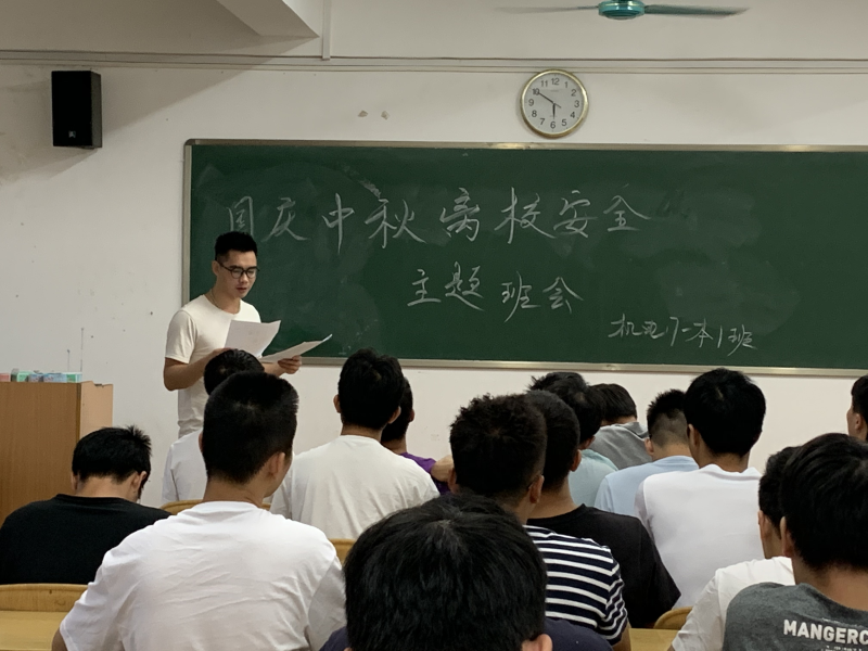 9月27日下午,机电17-本1班的全体同学于践行楼2406教室召开国庆中秋离校安全主题班会。此次班会主要提高同学们的安全防范能力以及增强对疫情的防控意识。