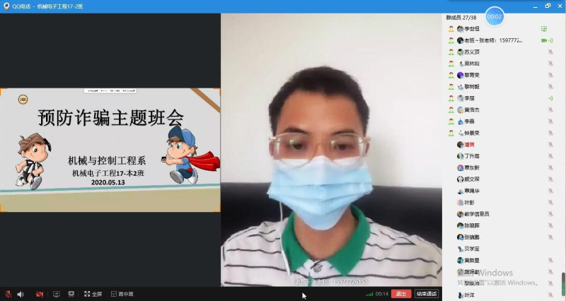 2020年是个特殊的一年,虽然在疫情遍布全球,但是违法犯罪份、分子依旧很活跃,尤其的电信诈骗分子;为此机电17-本2班召开了“防电信诈骗”线上主题班会。